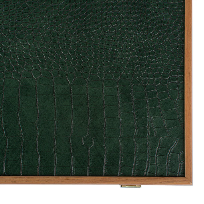 - Handgemaakt kunstleren ontwerp: toont een rijke Crocodile Tote-textuur in groen met een mokkakleurig en ivoorkleurig speelveld, wat een luxueuze spelervaring biedt.