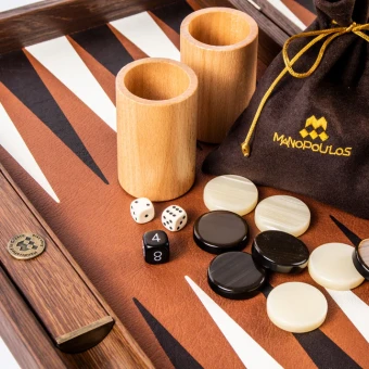 TRAVEL LEATHER BACKGAMMON BOARD IN CARAMEL BROWN