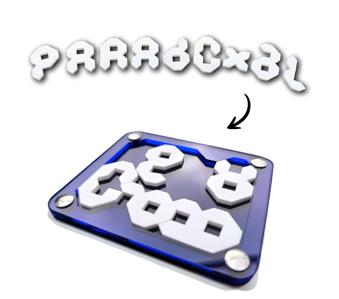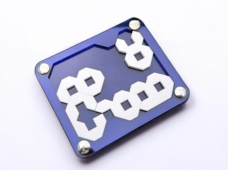 This clever level 8 packing puzzle is designed by Tuan Djeems, the goal is to fit all 9 acrylic pieces flat into the tray without overlaps.