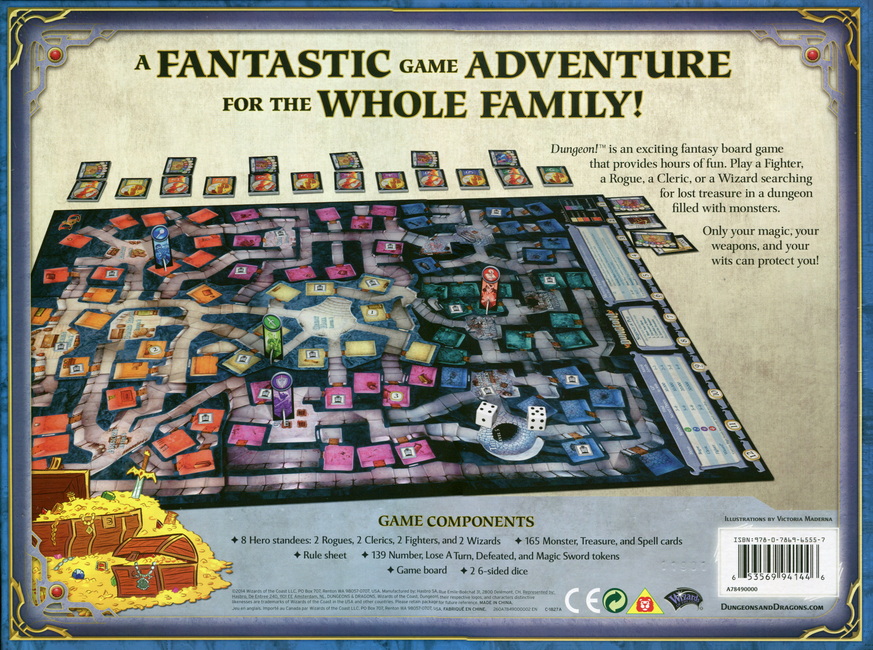 Dungeon! is een snel spel waarin jij en je vrienden kunnen beslissen welke kant ze op gaan in de zoektocht naar grotere en betere schatten. Blijf je bij niveau 1 en ruim je de Goblins en Kobolds op? Of duik je diep in level 6 en richt je je blik op de Purple Worm of de Red Dragon?